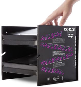The CK-12 and CK-24 MediaPAK™ Modules are constructed of powder-coated steel and feature an integral one-inch header to fit any 12-inch deep headered filter section box filter section or universal frame with no alterations to the air handling system. The modules can be re-filled.